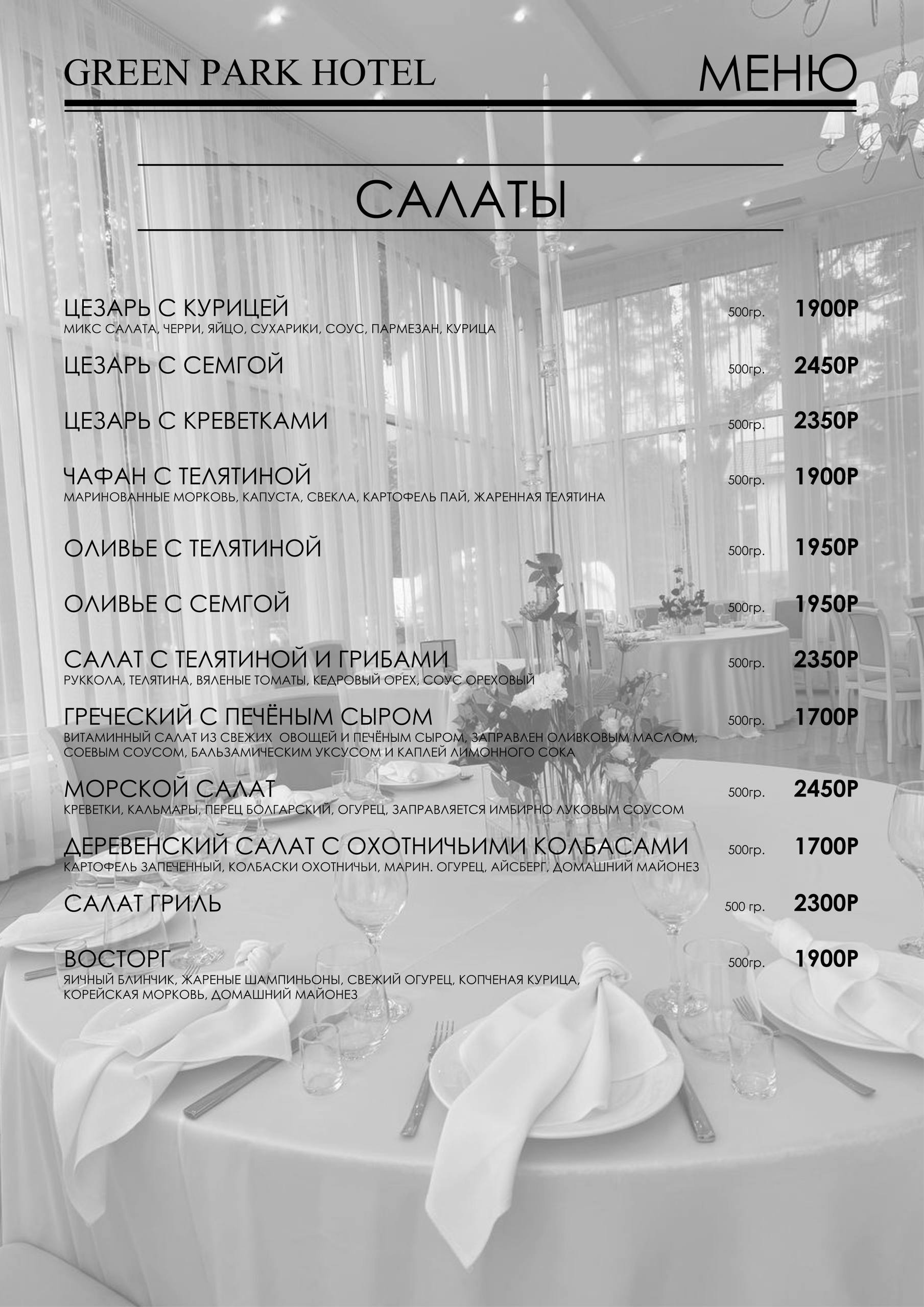 Уютный зал, великолепный интерьер , изысканные блюда шеф-повара, особая атмосфера и великолепный вид на из окон, — вот те прелести, которыми готов одарить наш ресторан всех своих гостей. Мы ждём Вас! Приглашаем отметить в нашем ресторане самые значимые события в Вашей жизни. Будь то корпоратив, юбилей или свадьба — мы рады вас видеть.